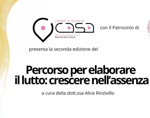 Il nostro Centro di Ascolto e Servizi Assistenziali (C.A.S.A.) di Chieti avvia la seconda edizione di “Crescere nell’assenza”, un percorso di supporto dedicato a chi sta vivendo l’esperienza del lutto e desidera affrontare il dolore con consapevolezza e resilienza.